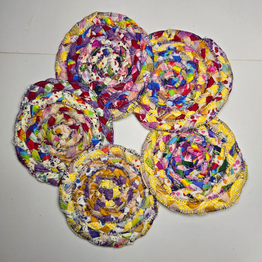 Vibrant Boho Braided Scrapped Fabric Coasters, 2pk